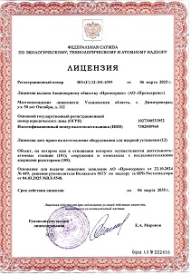 Лицензия на эксплуатацию ядерных установок и радиационных источников от 21 марта 2025 г.