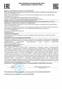 Декларация о соответствии ЕАЭС N RU Д-RU.РА04.В.08668/24 «Электропривод ЭП». Соответствует требованиям технического регламента Таможенного союза ТР ТС 020/2011 «Электромагнитная совместимость технических средств», ТР ТС 004/2011 «О безопасности низковольтного оборудования». Действительна до 29.05.2029 г.