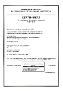 Сертификат об утверждении типа средств измерений «Преобразователи расхода вихревые электромагнитные ВЭПС-Р». Госреестр № 61872-15. Срок действия утверждения типа до 28.07.2030 г.